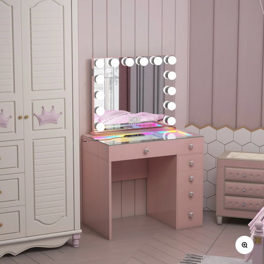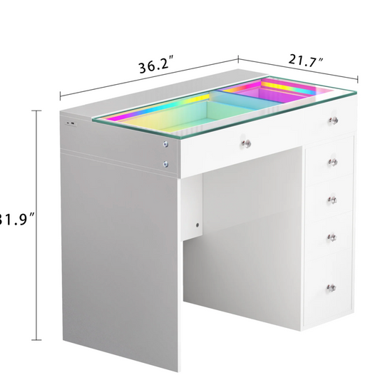 VANITII Diana RGB Vanity Desk - 6 Storage Drawers
