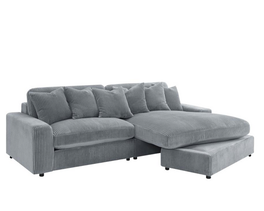 509540 -Caspian Upholstered Curved Arm Chaise Sectional Sofa Grey
