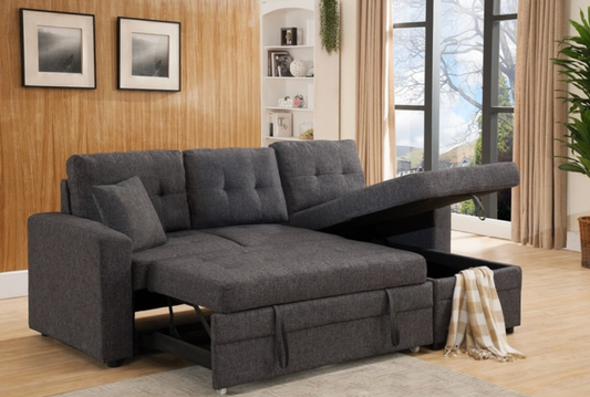 8008-GR GRAY Fabric Reversible Pull Out Sectional Sofa & Storage