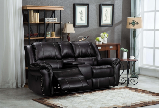 8014-2PC 2PC BLACK Air Leather Power USB Recliners w/ Stitching Sofa SET