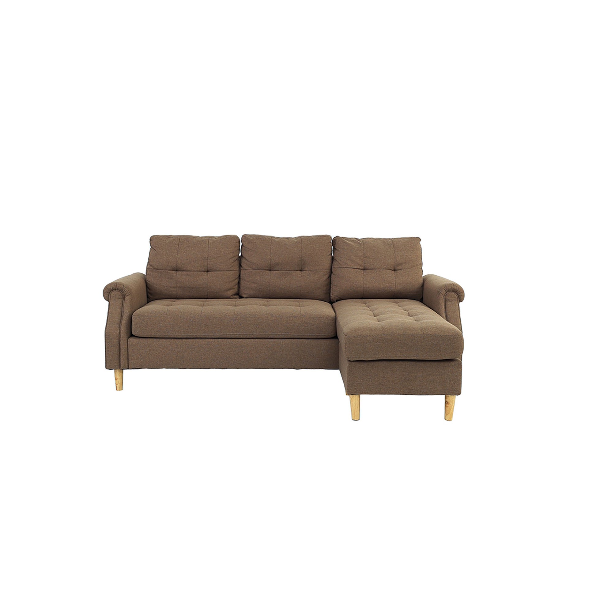 This small space Sofa Sectional with Reversible Chaise lounge is perfect for your living room. The Reversible Chaise can be arranged, to either the left or right side, so it easily customizes to your space. With its tufted back, seat cushions, and rolled curved armrest, this sectional achieves a clean and simple, silhouette making it perfect to work well with any home décor. Upholstered with Linen-like Fabric, this set is available in Dark Coffee, Light Coffee, and Blue Grey.