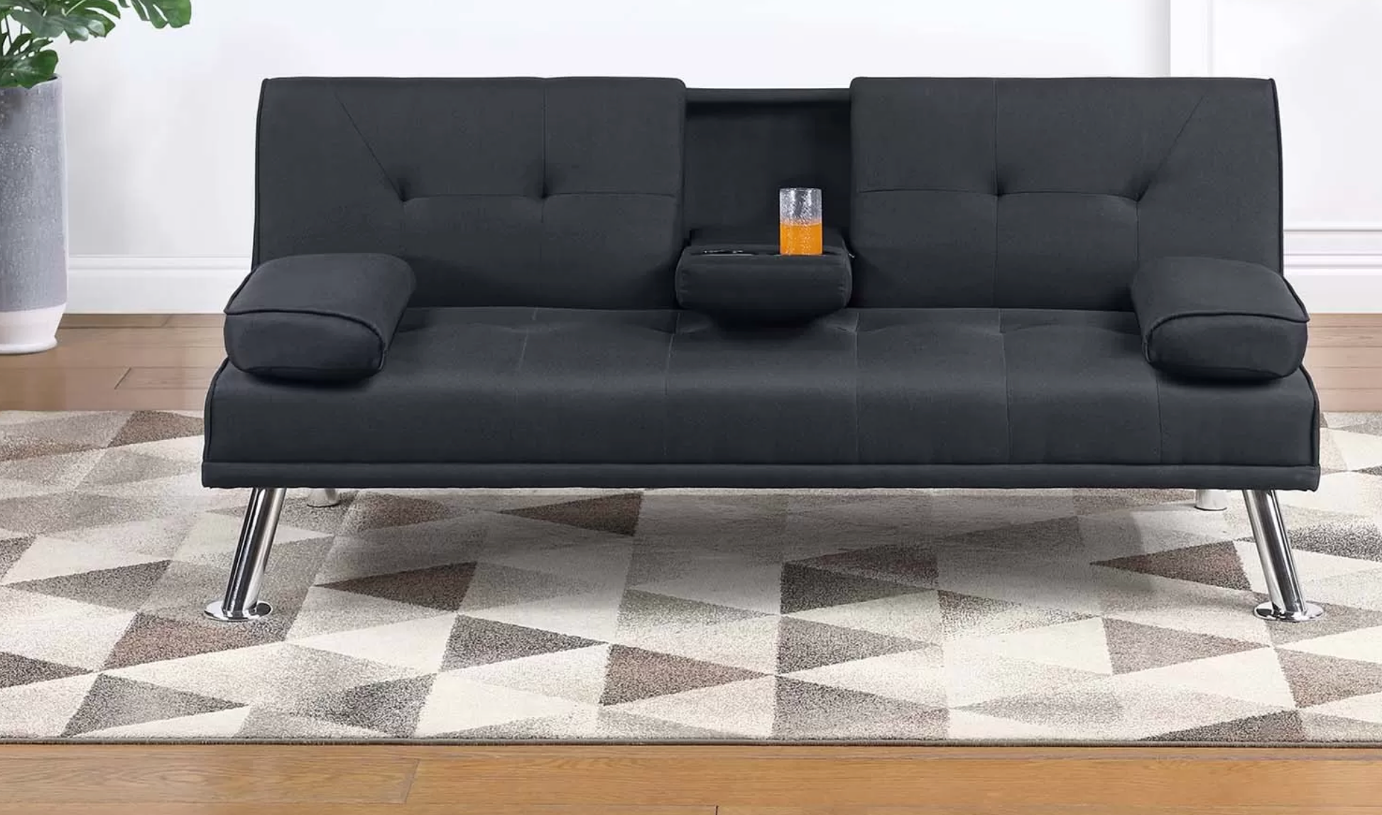 Color: Black; Material: Faux Leather+Plywood+S Spring+Foam+Polyester Fibers+Polyester Fiber Batting+Webbing+Hardware+Metal Leg